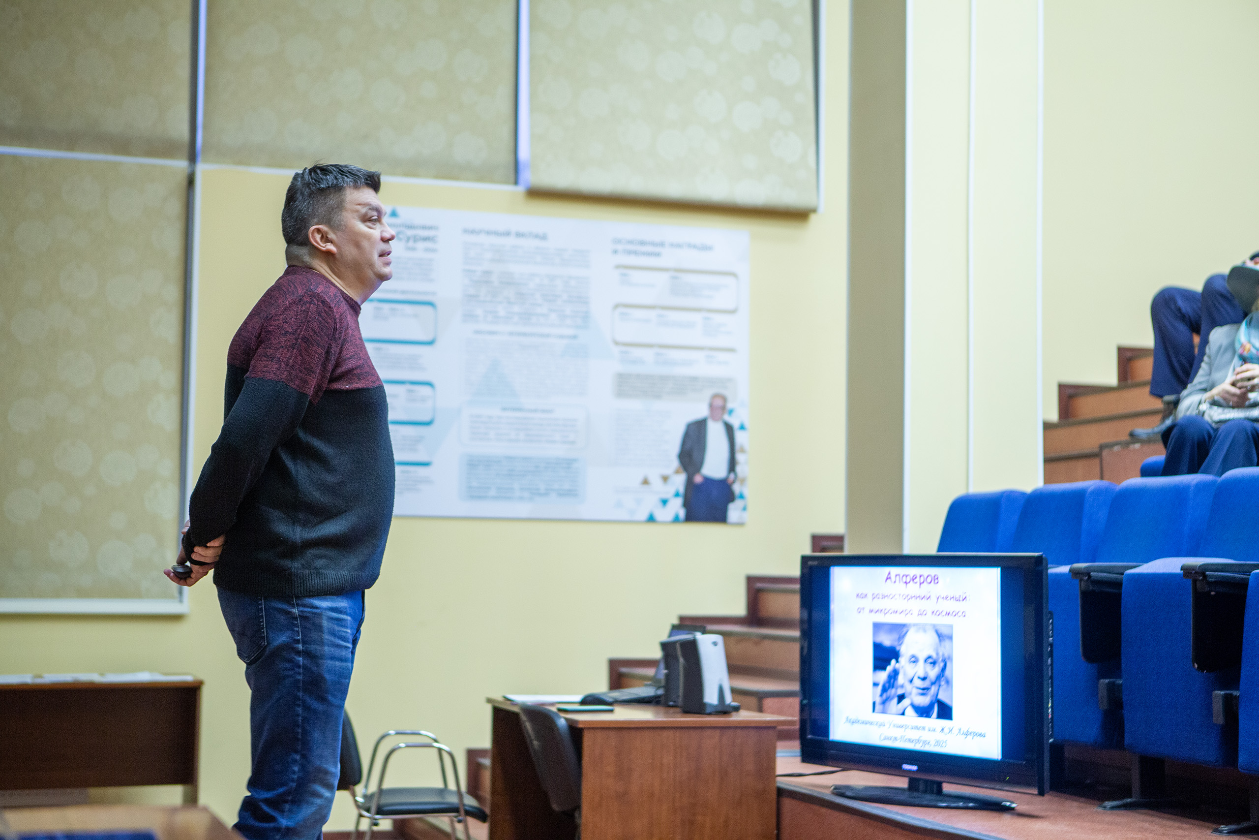 Директор Физико-технического института им. А.Ф. Иоффе РАН, член-корреспондент РАН Сергей Викторович Иванов рассказал о ключевой роли ФТИ в судьбе лауреата и развитии его идей. Он осветил историю создания Академического университета и этапы его становления, а также напомнил, что в 2000 году Нобелевскую премию по физике вместе с Жоресом Алфёровым разделили Герберт Крёмер и Джек Килби — за развитие полупроводниковых гетероструктур для высокоскоростной оптоэлектроники и за вклад в изобретение интегральной схемы соответственно.